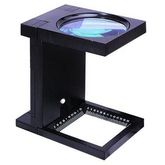 Loupe. Idéale pour relever des détails sur un plan trop petit, pour travailler sur de minuscules pièces, pour tous travaux de soudure électronique. Optique en verre minéral de diamètre 85 mm. Grossissement 3 fois. Utilise 4 piles AA - 1,5 V - non fournies- pour l&rsquo,éclairage.