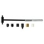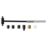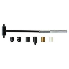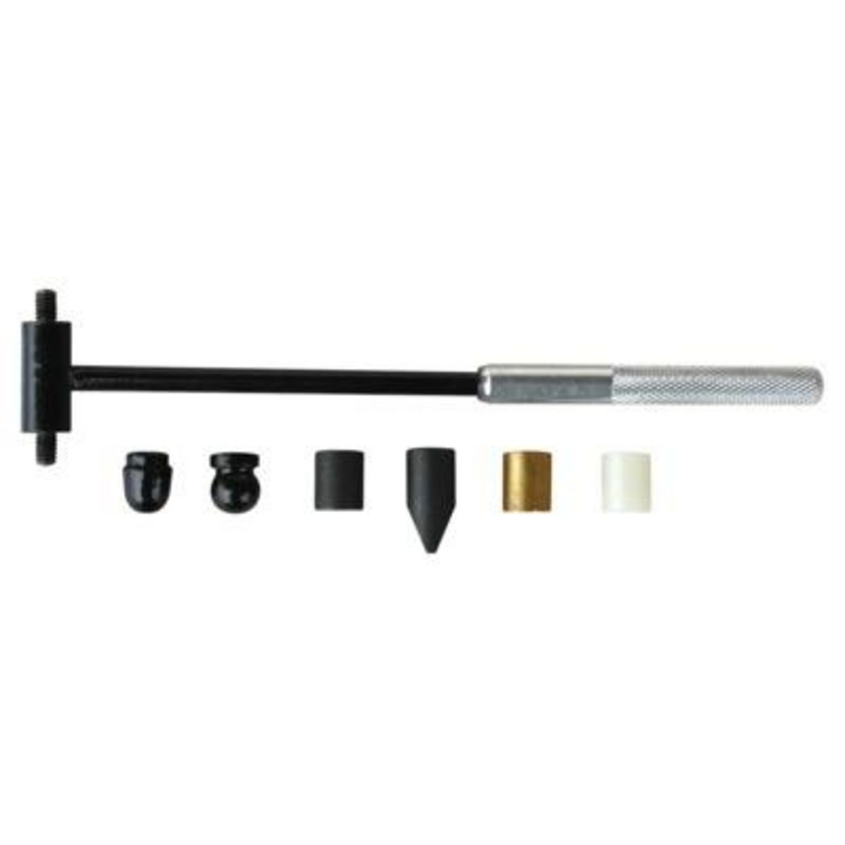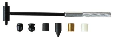 Marteau. Outil polyvalent grâce à ses têtes interchangeables : 3 têtes cylindriques - acier, laiton, nylon - pour les travaux de précision sur tous les matériaux, 1 tête sphérique en acier spécialement adaptée au martelage, 1 tête hémisphérique en acier, 1 panne pointue en acier.