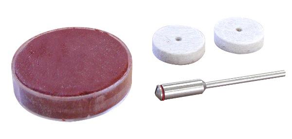 Pâte à polir + 1 feutre + porte-disques roue Ø 22 mm