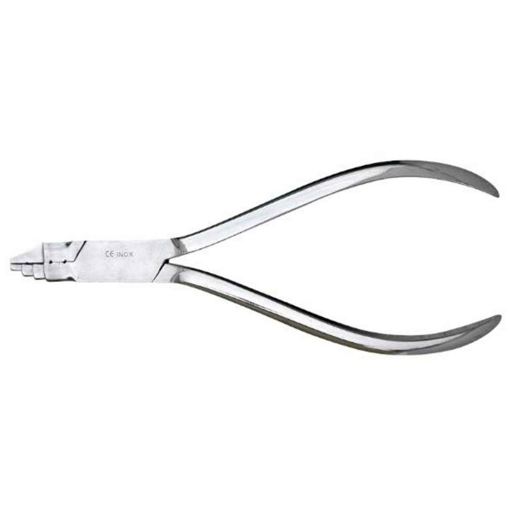 Qualité professionnelle. Corps en acier inoxydable. Longueur : 130 mm.Manches entrepassés.Permet de réaliser des anneaux, maillons, cintrages à partir de fil d&rsquo,acier, cuivre, laiton. 3 diamètres : 1, 3 et 5 mm.