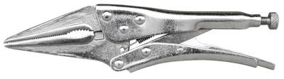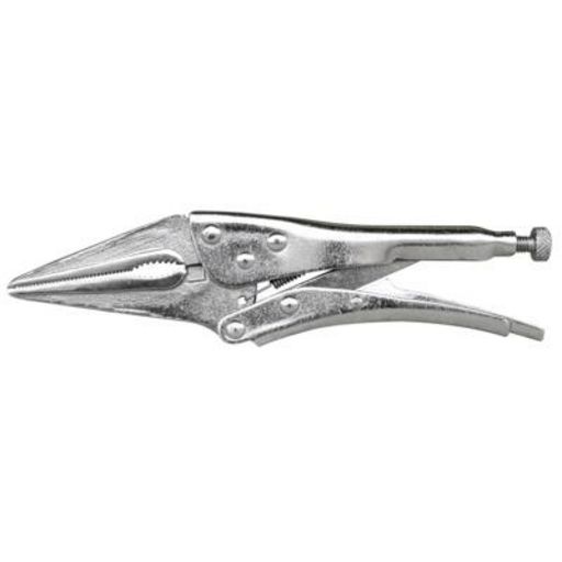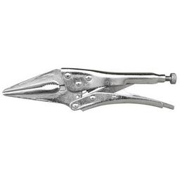 Pince etau. Corps en acier traité. Bec long et effilé. Capacité en bout : 44 mm. Longueur mâchoires : 38 mm.
