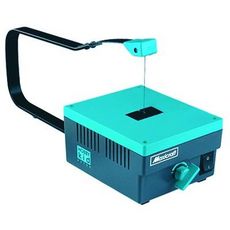 Scie électromagnétique. Pour découper avec finesse et précision, sans danger pour les doigts, des courbures très prononcées. Idéale pour la réalisation de découpes décoratives, marqueteries ou puzzles. Avec guide pour coupe droite. Trait de coupe : 0,1 mm. Table de travail 300 x 150 mm.