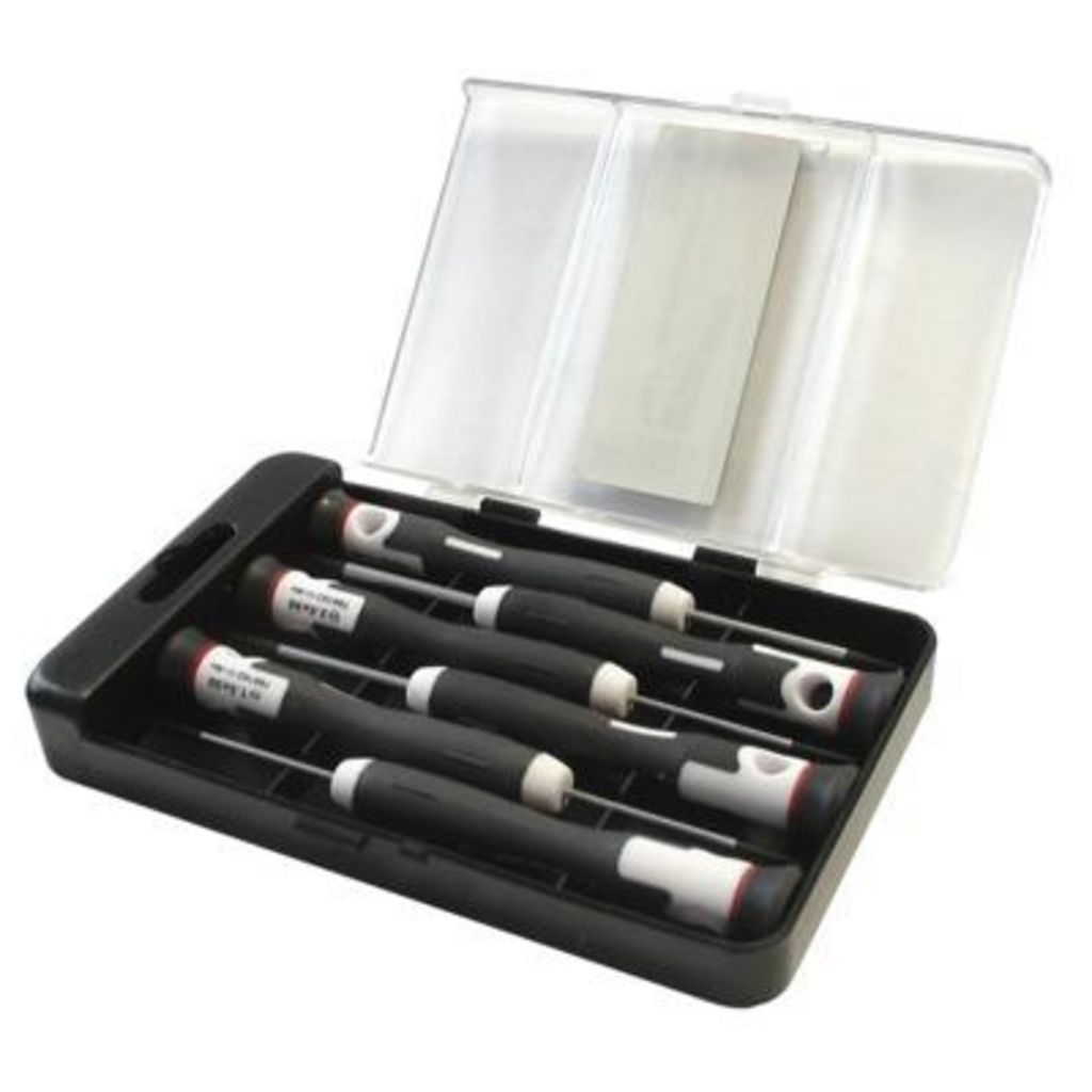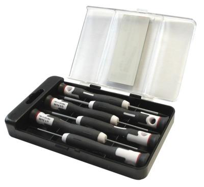 Tournevis de précision. Pour les bijoutiers, fabricants d&rsquo,instruments, monteurs de pièces miniatures, modélistes, électroniciens, opticiens, ... Tournevis bimatières avec tête pivotante. Plats : 1,5/2,0/3,0 - Ph : 00/0/1.