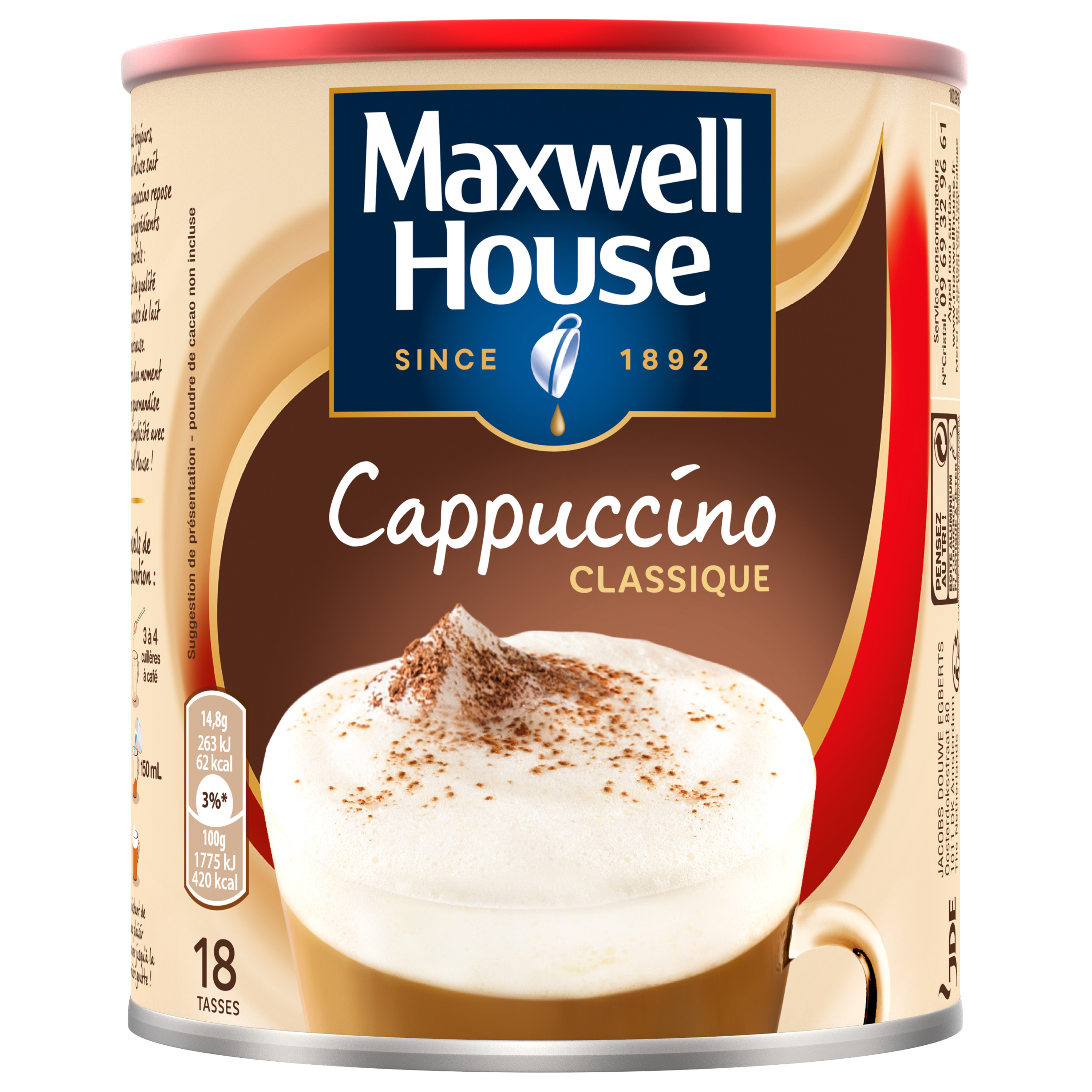 Depuis toujours, Maxwell House sait qu'un bon cappucino repose sur deux ingrédients essentiels : un café de qualité à l'arome subtil, et une mousse de lait généreuse et onctueuse.