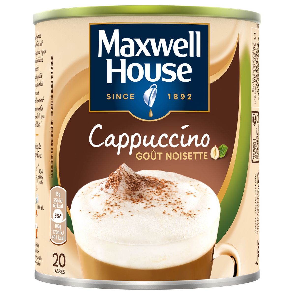 Toute la gourmandise d'un Cappuccino Maxwell House, savoureux et crémeux comme vous l'aimez, avec un délicieux goût de noisette.