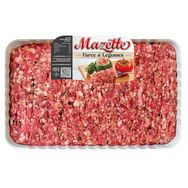 Ingrédients : Ingrédients : viande et gras de porc* 80%, tomate 8%, eau, chapelure (farine de riz, farine de pois chiche, amidon de maïs, sel, dextrose de blé), sel de Camargue, sucre, poudre de jus de betterave, antioxydants : E301, E392, épices, plante aromatique, oléorésine de paprika, huile essentielle de poivre, correcteurs d'acidité : E331, E262, basilic 1%, ail <1%.*Origine : UE