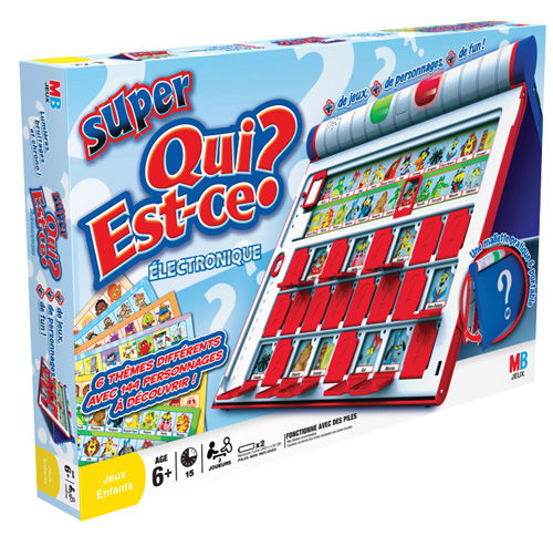 Avec le "Super Qui Est-Ce ?" signé MB Jeux, posez des questions pertinentes pour être le premier à retrouver les personnages figurant sur les cartes de votre adversaire ! Ce Super Qui Est-ce? en étonnera plus d'un avec son contenu enrichi et de l'électronique pour encore plus de plaisir en jouant !
