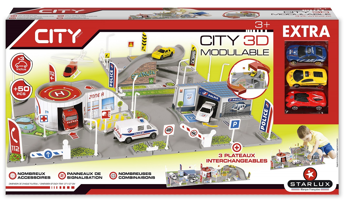 Ce coffret City 3D comprend 3 grandes plaques de jeu modulables à assembler, 3 véhicules et de nombreux accessoires. A travers ce coffret ultra réaliste, les enfants pourront se plonger dans l’univers de la vie citadine et s’immerger dans le monde de ces héros du quotidien qu'ils admirent tant. Ce jeu de rôle immersif stimulera leur imagination et leur inspirera de nombreux scénarios fascinants et captivants.