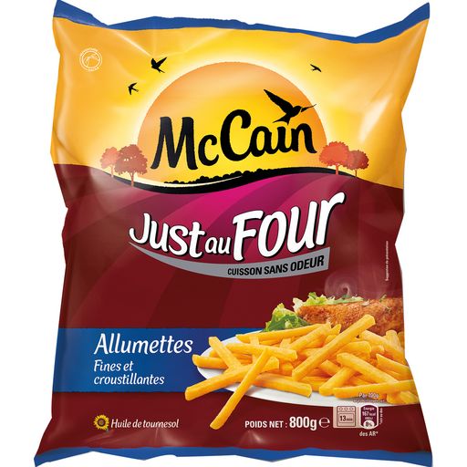 Une frite fine très croustillante avec une cuisson au four rapide et sans odeur, seulement 6,5% de matières grasses ! JUST AU FOUR ALLUMETTE
