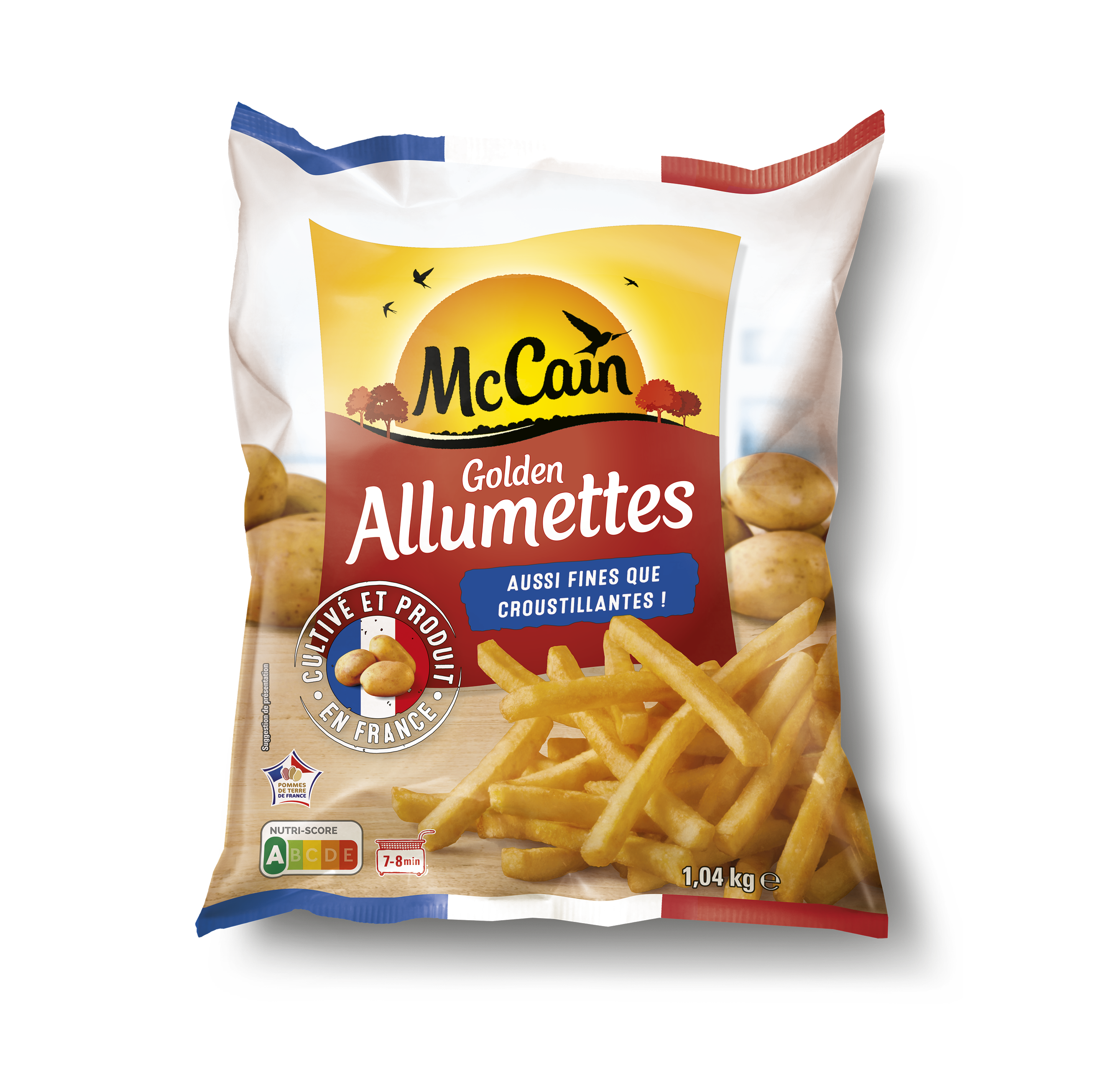 Des frites friteuses produites en France à partir de pommes de terre Francaises et d'huile de tournesol pour vous offrir des frites croustillantes et fondantes. Sans huile de palme et sans conservateur.Produit végétarien. Frites Golden Allumettes McCain