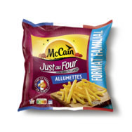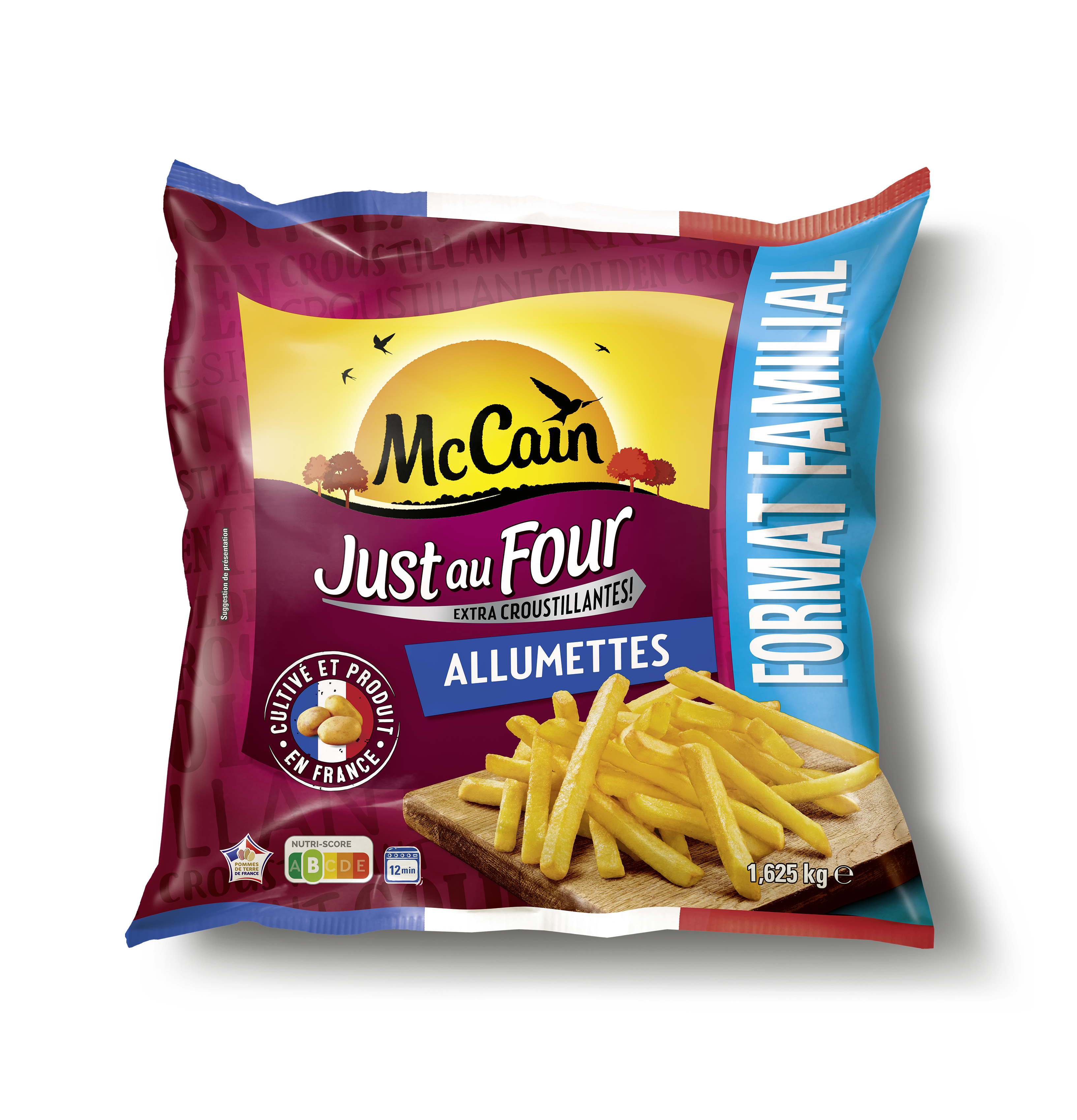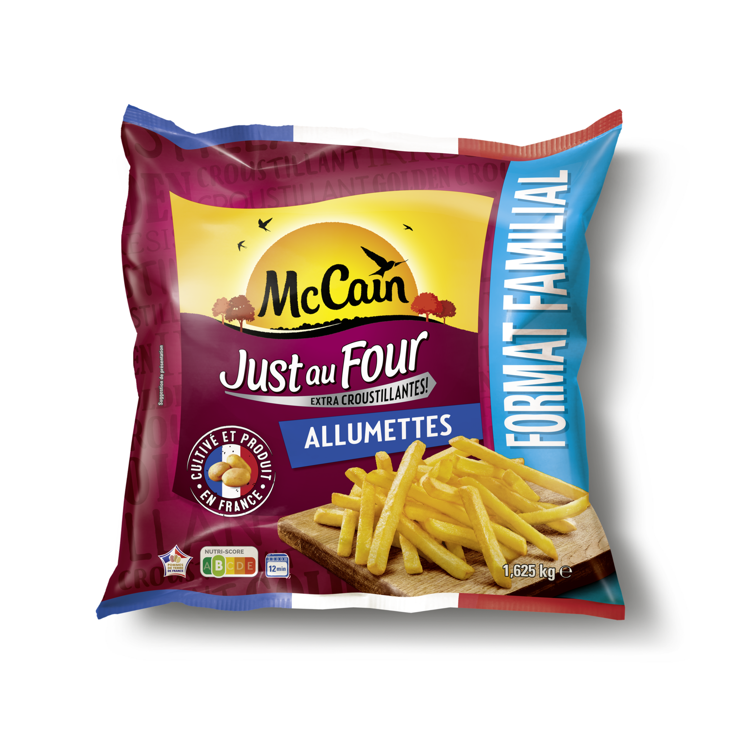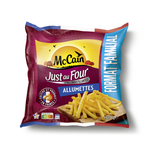 Frites Just au Four McCain Des frites extra croustillantes produites en France à partir de pommes de terre françaises. Préparées sans huile de palme et sans conservateur. Produit végétarien