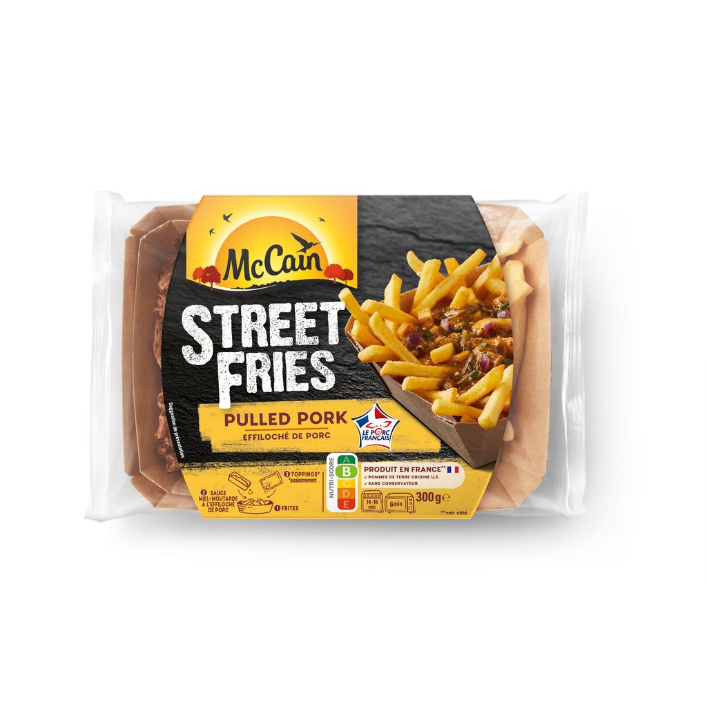 Pour un repas complet, McCain vous propose en une barquette de délicieuses frites McCain accompagnées d’une sauce gourmande au miel, à la moutarde et au porc effiloché à verser sur les frites, sans oublier ses herbes et aromates pour finir la prépa