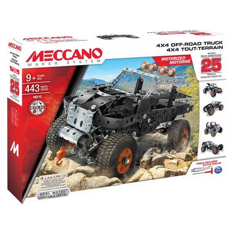 Construis un splendide pick-up Meccano et franchis tous les obstacles avec son moteur surpuissant ! Amuse-toi également à reconstruire d'autres modèles et véhicules ! 25 modèles différents à construire à l'aide des instructions de montage. Utilise ton imagination pour réaliser tes propres créations,