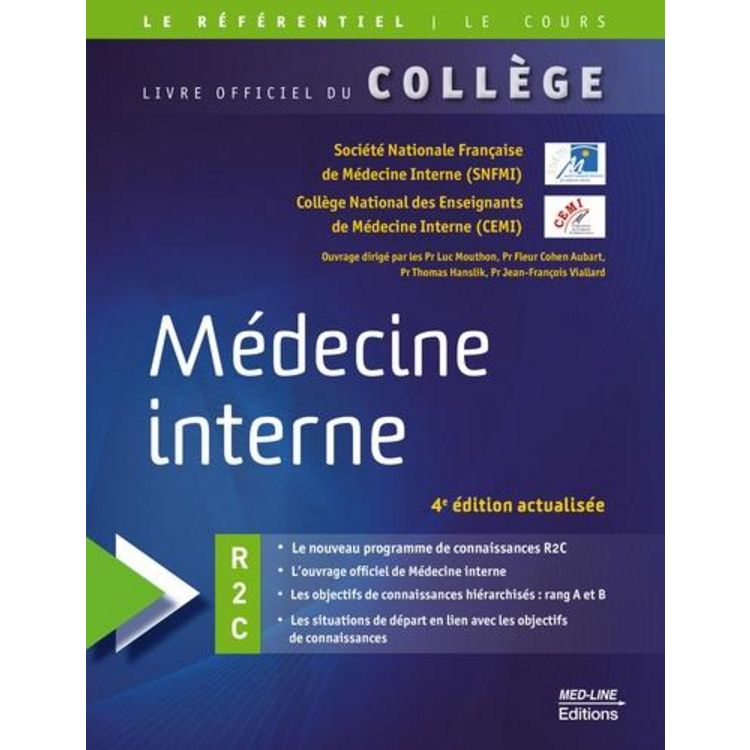 L'ouvrage officiel réalisé par le Collège National des Enseignants de Médecine Interne (CEMI) sous l'égide de la Société Nationale Française de Médecine Interne (SNFMI) pour les étudiants du DFASM. Conçu et rédigé par près de 100 enseignants de Médecine Interne. Tout le nouveau programme de connaissances de la spécialité pour la R2C et les modules du DFASM, avec la nouvelle numérotation. Pour chaque item, les objectifs de connaissances hiérarchisés en rang A et rang B (dans un tableau en début d'item et tout au long de l'item grâce à un repérage couleur).