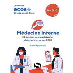 Killian Ringenbach est interne en médecine interne à Lyon, et impliqué dans différentes conférences de préparation à l'EDN depuis plusieurs années. Il vous livre 20 ECOS représentant des situations importantes en médecine interne. Cet ouvrage vient compléter la collection ecos +, première collection ECOS publiée en France. Vous trouverez : 20 ECOS couvrant les situations de départ et domaines de compétence au programme de l'EDN , Une correction très détaillée pour chaque station , Un mot de l'auteur pour mieux appréhender chaque situation de départ.