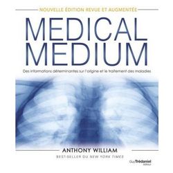 Nouvelle édition revue et augmentée du premier livre best-seller de la série Medical Medium , elle-même best-seller ! Anthony William a aidé des dizaines de milliers de personnes à guérir d'affections mal diagnostiquées, mal soignées ou inconnues du corps médical. Une voix lui souffle à l'oreille la cause du problème ainsi que la façon de le régler. Il obtient des résultats spectaculaires, y compris chez des malades souffrant depuis de nombreuses années. Il revient aujourd'hui avec une édition revue et enrichie du livre dans lequel il a pour la première fois ouvert la porte à des connaissances de guérison, fruit de plus de trente ans d'expérience. Préparez-vous à découvrir : - Les causes de maladies ignorées par le corps médical. - Les traitements entièrement naturels d'un certain nombre de maladies invalidantes telles que la maladie de Lyme, la fibromyalgie, la fatigue surrénalienne, le syndrome de fatigue chronique, les déséquilibres hormonaux, la thyroïdite de Hashimoto, la sclérose en plaques, la dépression, les troubles neurologiques, l'inflammation chronique, les maladies auto-immunes, les problèmes de glycémie, la colite, etc. - Des techniques de régénération de l'âme et de l'esprit, souvent soumis au stress et à la souffrance. - Un programme détox de 28 jours.