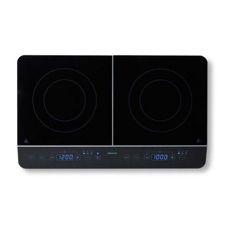 Cette plaque induction est alimentée par une tension de 220-240 V, avec une fréquence de 50 Hz. Elle dispose d'un contrôle tactile pratique situé à l'avant, facilitant la régulation de la puissance et du temps de cuisson. Les zones de cuisson ont des diamètres de 20 cm chacune, offrant une surface de cuisson optimale pour vos ustensiles compatibles induction.