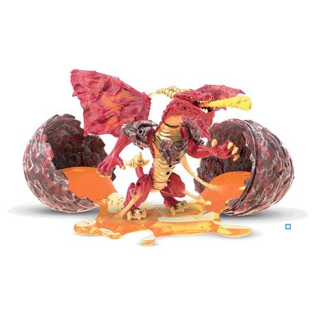Découvre Breakout Beasts, un œuf contenant une créature, un dragon à corne. Tu y trouveras un sachet de slime de couleur et les différentes pièces cachées à l'intérieur du slime permettant de construire la créature articulée. Une fois celle-ci construite, elle peut soit être posée sur l'oeuf soit être transformée en mélangeant ses pièces avec celles d'une autre pour faire une créature unique imaginer par le possesseur.