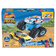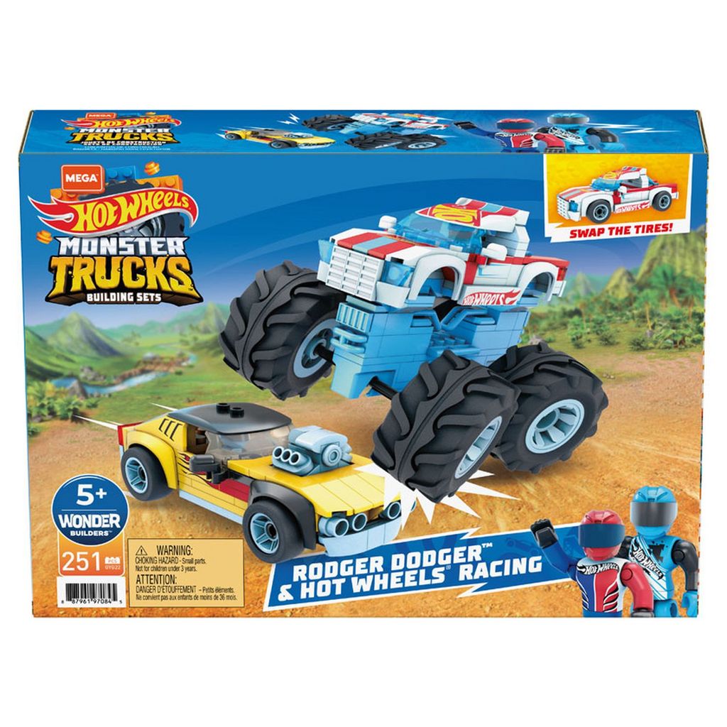 Brûle la gomme et écrase la concurrence avec un jeu de construction Hot Wheels à construire qui comprend le classique Rodger Dodger et le monster truck Hot Wheels Racing !