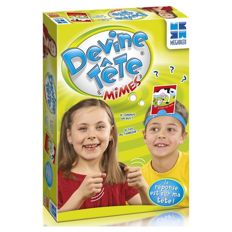 Devine Tête mimes de Megableu, c’est la version « mimes » du grand classique Devine tête !Les joueurs devront à tour de rôle faire deviner à leurs coéquipiers, par des gestes et des sons, l‘action qui est représentée sur la carte qui est sur leur tête : « je bois à la paille », « je reço