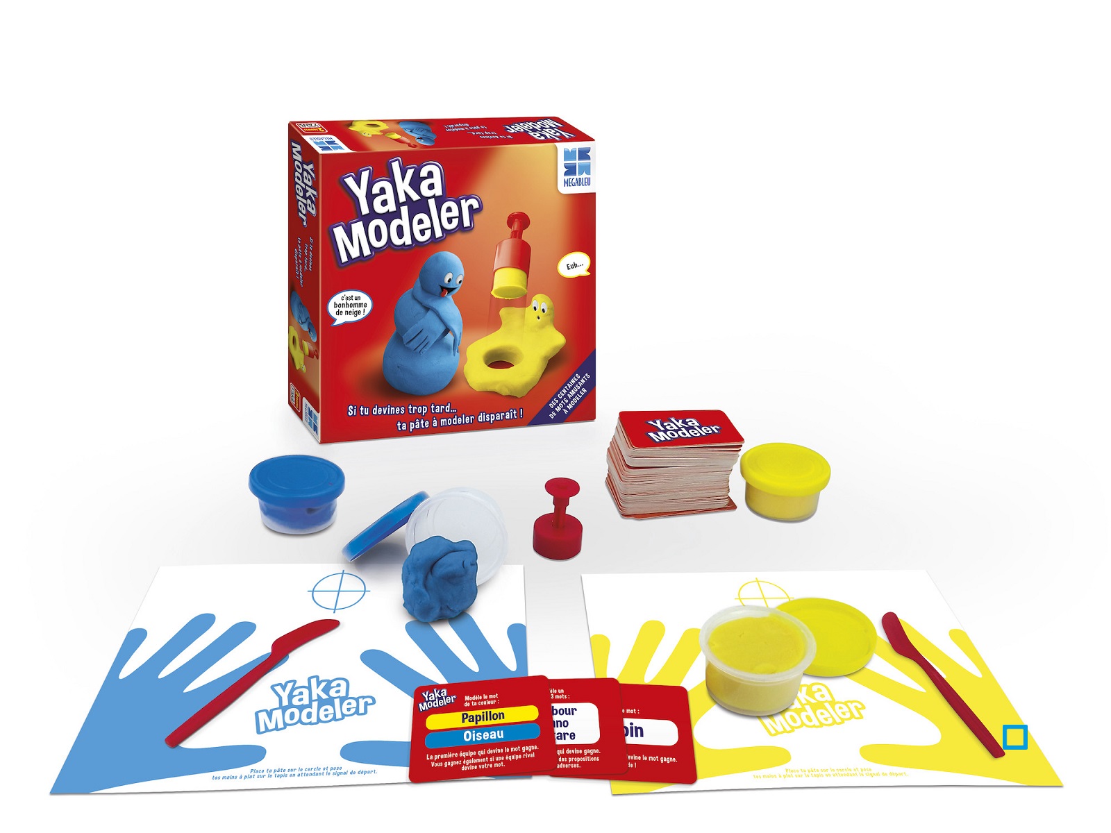 Yakamodeler est un jeu original avec des mots ou des expressions a? modeler ! Un joueur tire une carte et le « sculpteur » de chaque e?quipe doit modeler, en me?me temps, avec son stock de pa?te, le mot ou l’expression pour le ou la faire deviner a? ses coe?quipiers ! La premie?re e?quipe qui