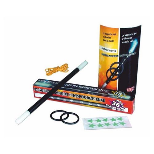 En savoir +Amuses toi avec ta Baguette magique FLUO, Sticker à coller, Livret et 36 tours de magie ainsi de 2 anneaux et cordons magiques.