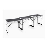 Ces tables mesurent 300 x 60 x 94 cm, offrant une surface de travail généreuse tout en restant compactes pour optimiser l'espace. Elles sont réalisées en bois ingénier, un matériau robuste et durable qui garantit une longue durée de vie. Le poids total de l'ensemble est de 11,3 kilogrammes, ce qui facilite leur déplacement et leur installation.