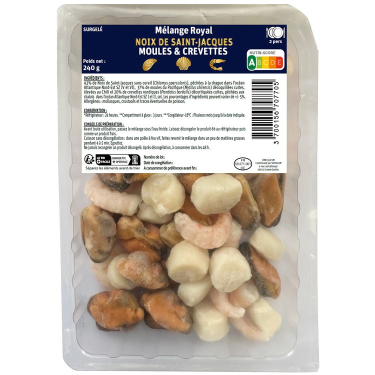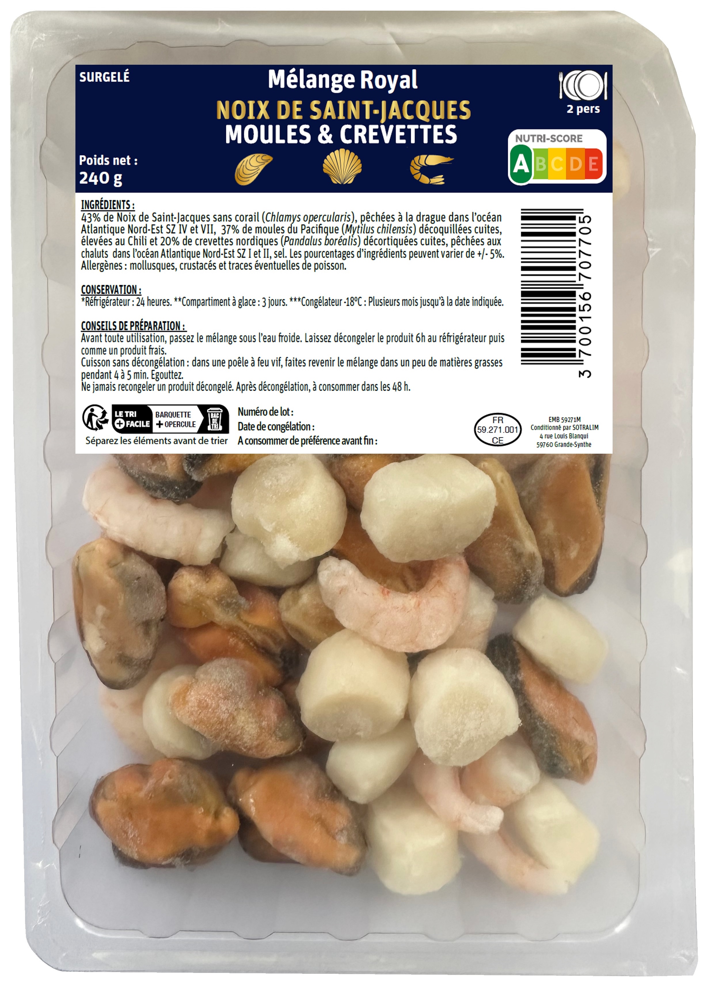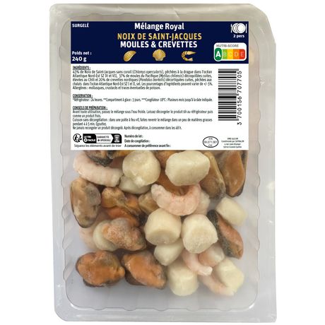 Mélange royal - Noix de Saint-Jacques, moules et crevettes, surgelé - 240g