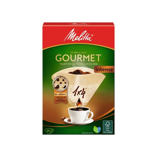 La structure du papier unique Aromamax® utilisée pour nos filtres à café Gourmet Intense laisse plus de temps à votre café pour être filtré. Si vous aimez votre café intense et corsé, alors ce filtre à café est idéal pour vous. tous les arômes intenses du café peuvent se développer de manière optimale pour laisser place à un café filtre aromatique et distinctif. La stucture spéciale au-dessus du porte-filtre empêche les débordements dans votre machine. Les arômes intenses peuvent ainsi parfaitement se développer.