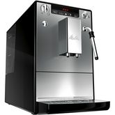 Le Melitta Caffeo Solo+Milk E 953-102 Argent est une machine à expresso entièrement automatique qui allie design compact et fonctionnalités avancées. Avec une largeur de seulement 20 cm, elle est idéale pour les espaces réduits tout en offrant une grande variété de boissons caféinées. Grâce à son broyeur intégré, elle permet de préparer des cafés fraîchement moulus, tandis que le bec verseur réglable facilite le remplissage de tasses de différentes tailles.