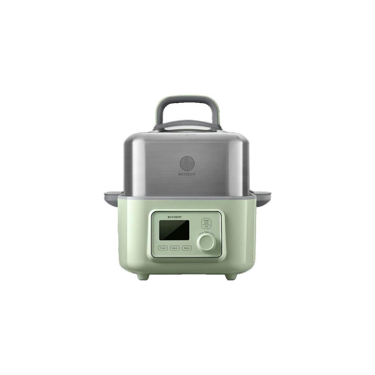 Le cuiseur vapeur BUYDEEM G564 de la marque Mellow-yellow est un appareil de cuisine compact et élégant, conçu pour préparer des repas sains et savoureux. Avec une capacité de 5 litres, il propose six programmes automatiques pour une cuisson parfaite à la vapeur, préservant ainsi les nutriments des aliments. Son design rétro en vert tendre s'intègre harmonieusement dans toutes les cuisines. Il est équipé d'un écran LCD, d'un capteur de température, d'un port d'ajout d'eau externe et d'un indicateur de manque d'eau pour garantir sécurité et confort d'utilisation. Les accessoires inclus comprennent un pot en verre double et une plaque en céramique. Ce cuiseur vapeur est certifié FDA et BPA Free, assurant une utilisation saine et sécurisée. Il permet également de préparer des yaourts et de cuisiner doucement une variété de plats.