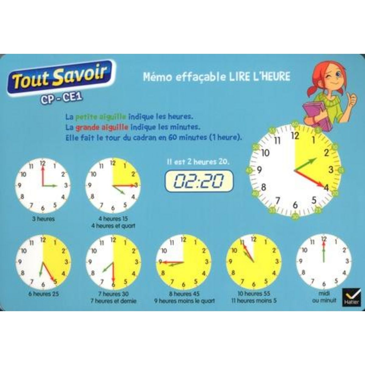 MEMO EFFACABLE LIRE L'HEURE CP-CE1, Hatier
