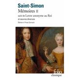 Dans ce deuxième volume, de nouveaux textes extraits des Mémoires sont regroupés selon un ordre thématique : personnages et figurants, anecdotes, conceptions et action de Saint-Simon politique. Une quatrième partie, qui sera, pour beaucoup, une révélation, donne les textes hors Mémoires : les projets de gouvernement du duc de Bourgogne, dauphin, la magnifique et longue lettre anonyme au Roi (1712) sur les malheurs du règne, divers personnages et anecdotes par l'auteur, une postface testamentaire (août 1753). Un formidable et nécessaire appareil critique complète ces textes, en faisant revivre toute l'histoire de Louis XIV et de la Régence. On aura ainsi un Saint-Simon essentiel : varié, concret ou abstrait, portraitiste ou philosophe, mais toujours merveilleux écrivain.
