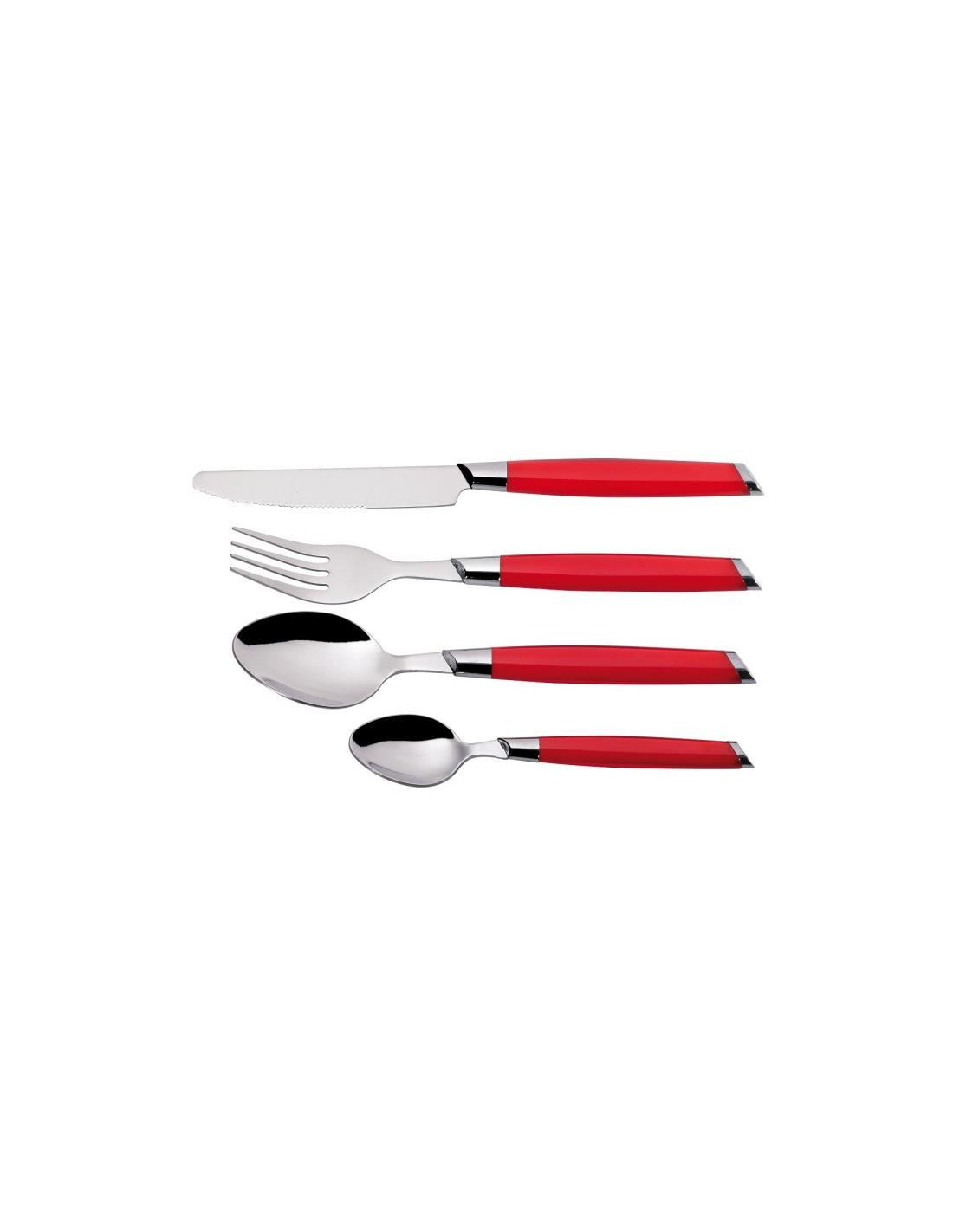 Ménagère 24 pièces BITON composée de 6 fourchettes + 6 couteaux + 6 cuillères à soupe + 6 cuillères à café. Manche ABS rouge et lames en inox.
