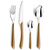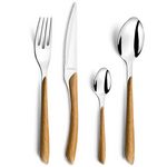 Très belle ménagère de 24 pièces. Nous avions exactement la même, mais qui s'est abîmée au fil du temps. De ce fait, nous l'avons rachèté, à un très bon prix d'ailleurs (en promotion). Juste un conseil : éviter le lave vaisselle, car à la longue, l'effet bois pâlit !
