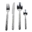 Fourchette, cuillère épaisseur de l'inox 2,5 mm - café épaisseur de l'inox 1,8 mm. Décor bulles sur le manche