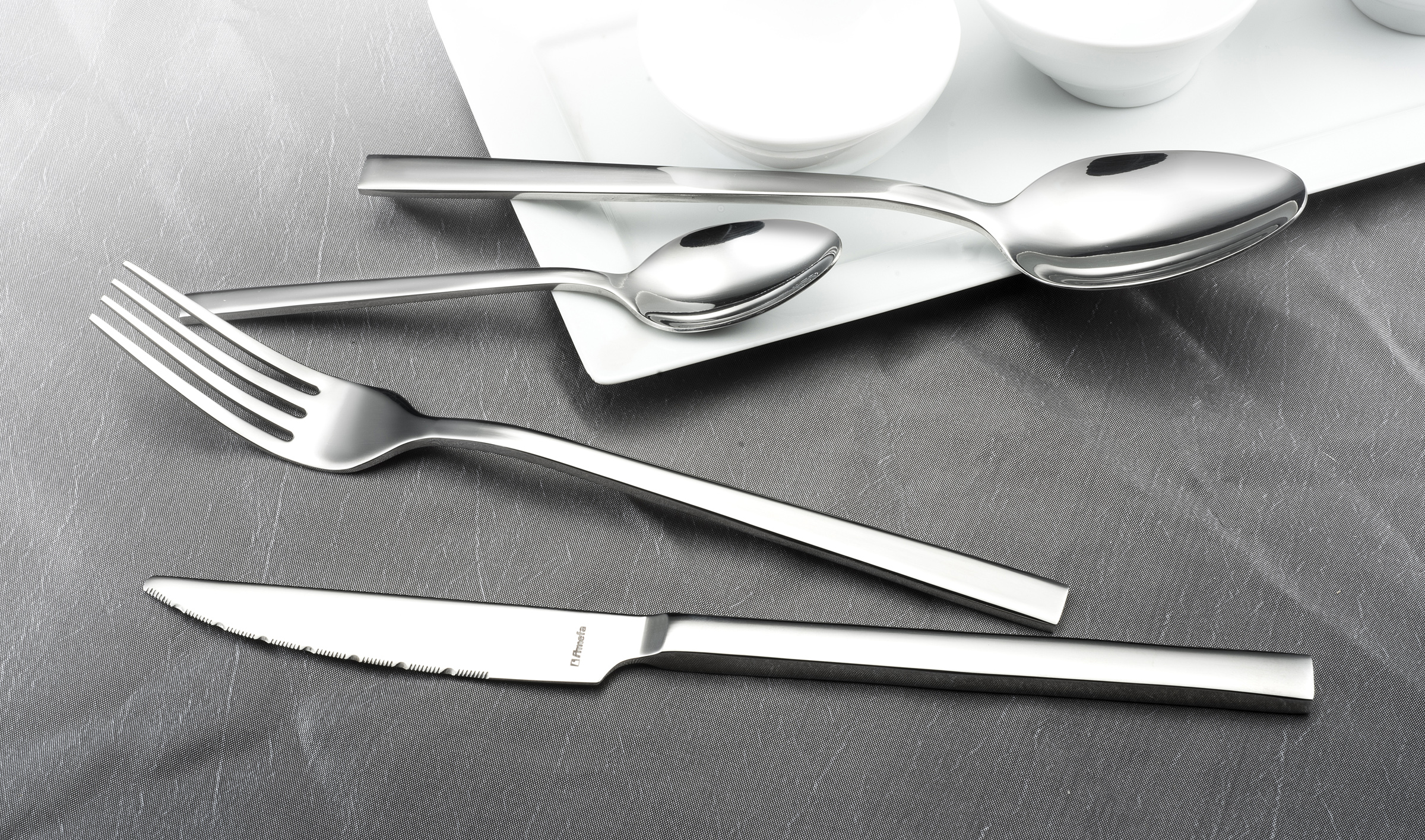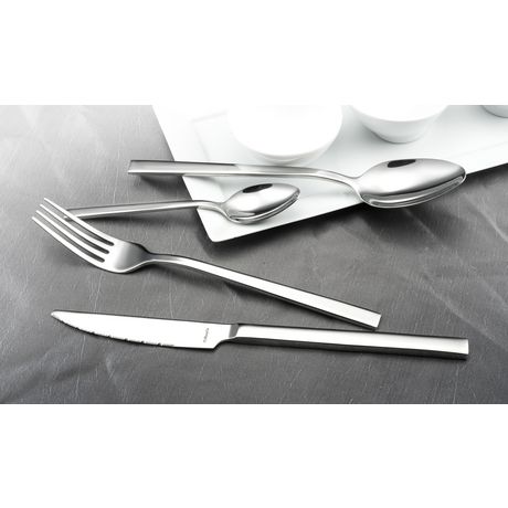 Ménagère 24 pièces caractere en acier 18/0 composée de 6 fourchettes, 6 couteaux, 6 cuillères à soupe et 6 cuillères à café. Gamme forgée finition brillant. Couteau steak avec lame microdentée.