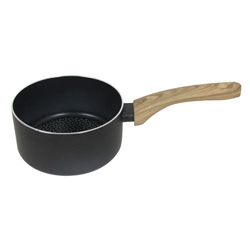 Cuisinez deviendra un plaisir avec cette casserole en aluminium, résistante et polyvalente. De design rustique chic, sa poignée soft touch décor bois et son revêtement noir mat la rendent élégante et moderne.FICHE TECHNIQUE- Casserole en aluminium.- Revêtement intérieur deux couches antiadhérent.- P