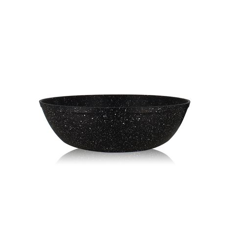Wok 28 cm tous feux dont induction, effet pierre. Aluminium forgé avec revêtement intérieur antiadhésif. Poignée amovible vendue séparément Réf: 756309. Compatible lave-vaisselle.