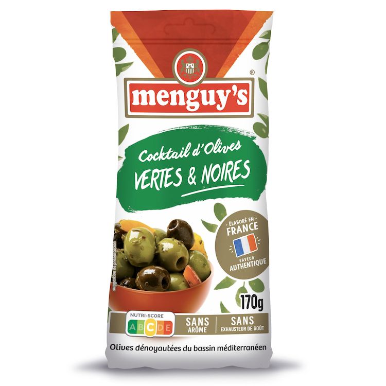 Des olives vertes et noires dénoyautées et rigoureusement sélectionnées avec des morceaux de poivrons & des fines herbes. Sans arôme ni exhausteur de goût. Olives noires garanties sans gluconate ferreux. Elaboré en France dans notre usine (Frontignan, 34).