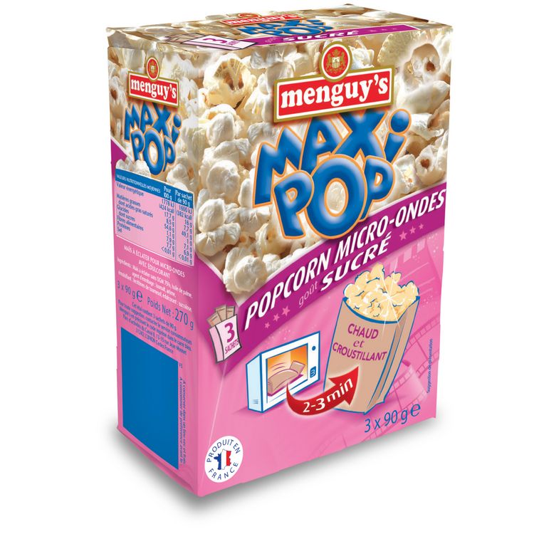 Maxi pop corn goût sucré micro-ondable 2-3 min sans OGM