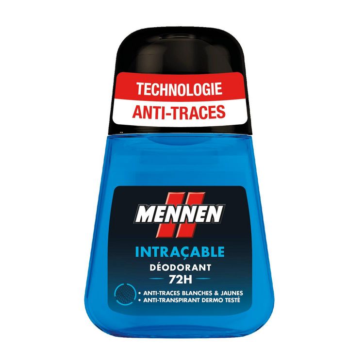 Le déodorant bille Mennen Intraçable vous offre une efficacité pendant 72h. Sa formule est garantit anti-traces blanches et jaunes. Il respecte votre peau et le mécanisme naturel de la transpiration. Efficacité 72h