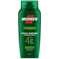 Gel Douche & Shampooing 4 en 1 à la fraîcheur intense et au parfum Tonique longue durée. Votre peau, vos cheveux, votre visage et votre barbe sont propres et hydratés.