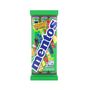 Sucre, sirop de glucose, jus de fruits (framboise, pastèque, fraise, ananas, raisin, orange, citron, fruit de la passion, cassis, litchi, myrtille, banane, citron vert, cerise) (2%), huile de noix de coco, acidifiant (acide citrique), fécule, arômes, maltodextrine, beurre de cacao, épaississants (gomme gellane, gomme de cellulose, gomme arabique), émulsifiant (sucroesters d'acides gras), agent d'enrobage (cire de carnauba), colorants (anthocyanes, caramel ordinaire, curcumine, caroténoïdes, rouge de betterave).