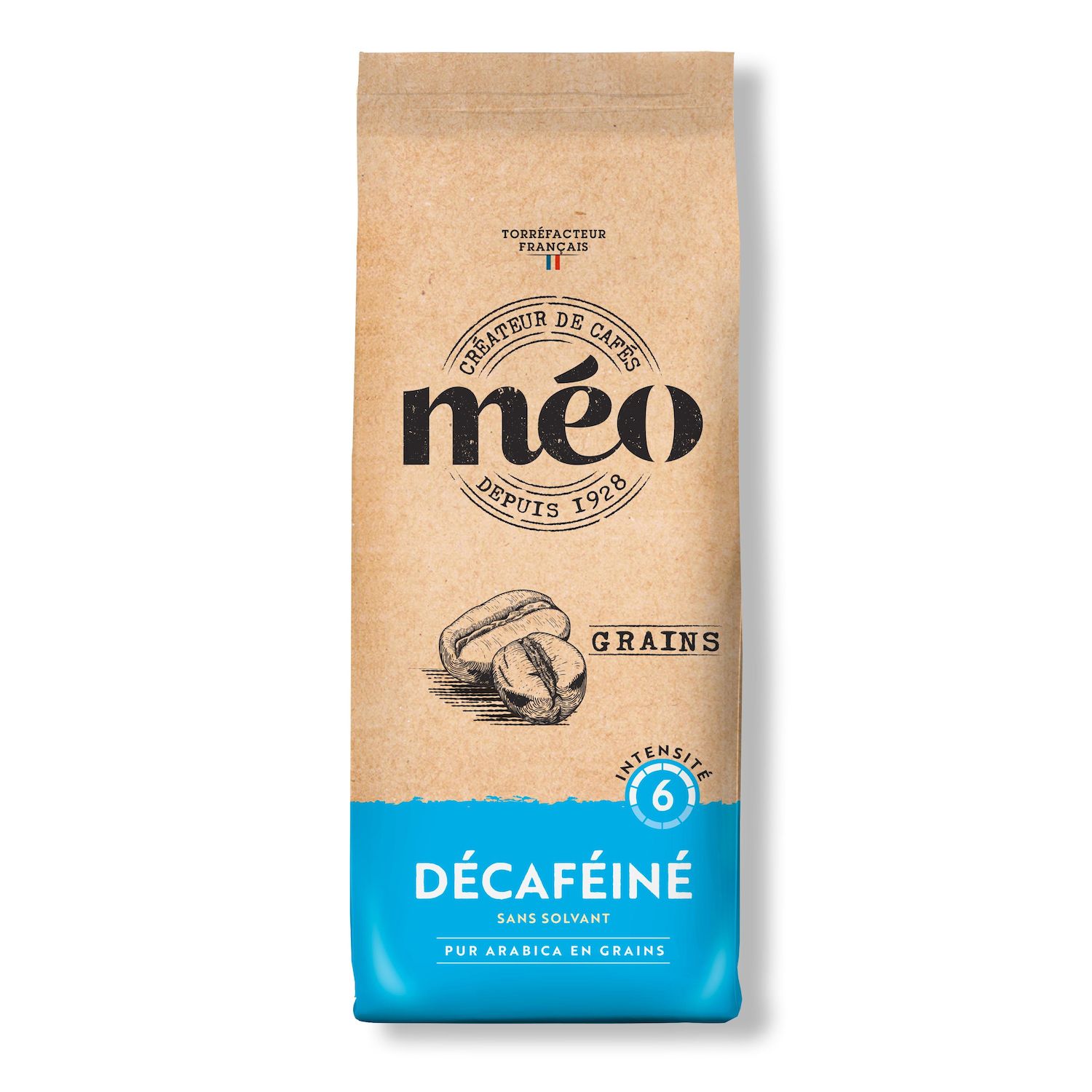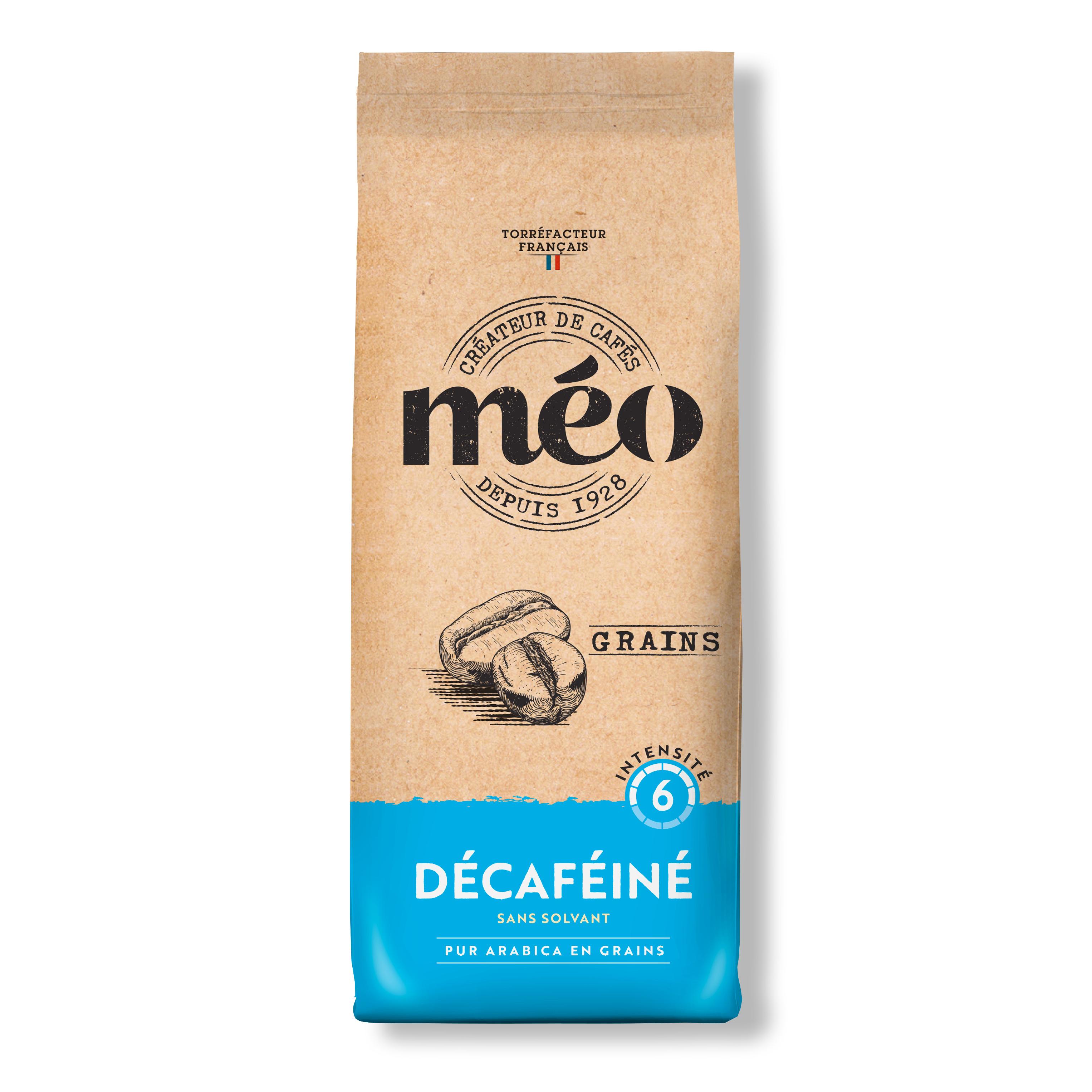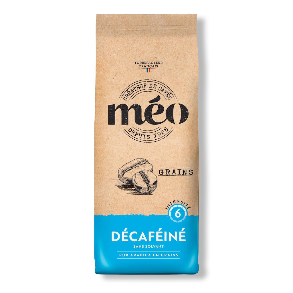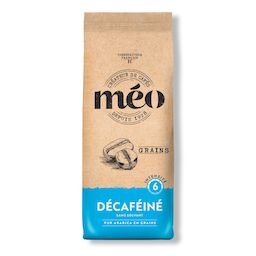 Café en grain décaféiné MEO, idéal pour les amateurs souhaitant réduire leur consommation de caféine sans sacrifier le goût.