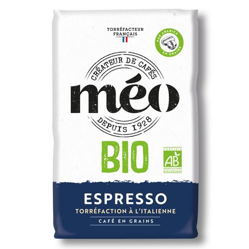 Le Café Méo BIO Espresso est un café mélange arabica et robusta agriculture Biologique. C'est un café corsé en raison de sa torréfaction poussée à l'italienne, idéal pour la préparation des Espresso et Ristretto.