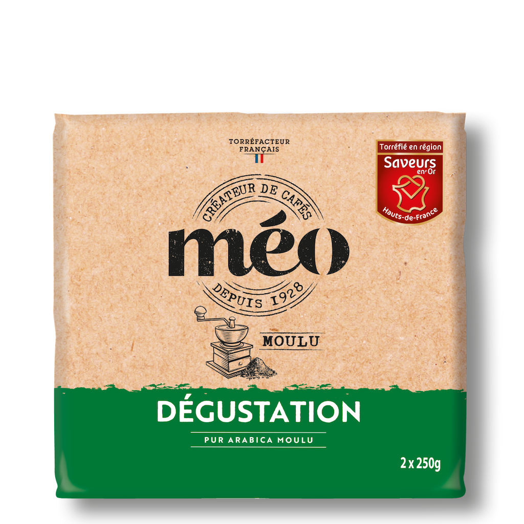 Le Café Méo Dégustation est un café composé d'arabicas doux, corsés et fruités qui garantit au consommateur un goût parfaitement équilibré.