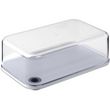 | Descriptif | La cloche a fromage permet de conserver le fromage au réfrigérateur et aussi de plateau de fromage instantané. En effet, le plateau de service inclu permet de servir le fromage directement. Passe au lave vaisselle. Garanti sans BpA. Fabriqué aux Pays | |