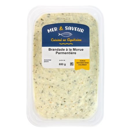 brandade à la morue parmentière, pommes de terre, aïl frais, crème, persil.