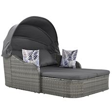 Bain de soleil 2 places en Métal avec auvent réglable, 4 coussins, housses amovibles, gris